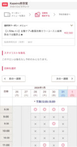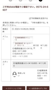 6.希望日時の選択・お客様のお名前などご予約情報を入力